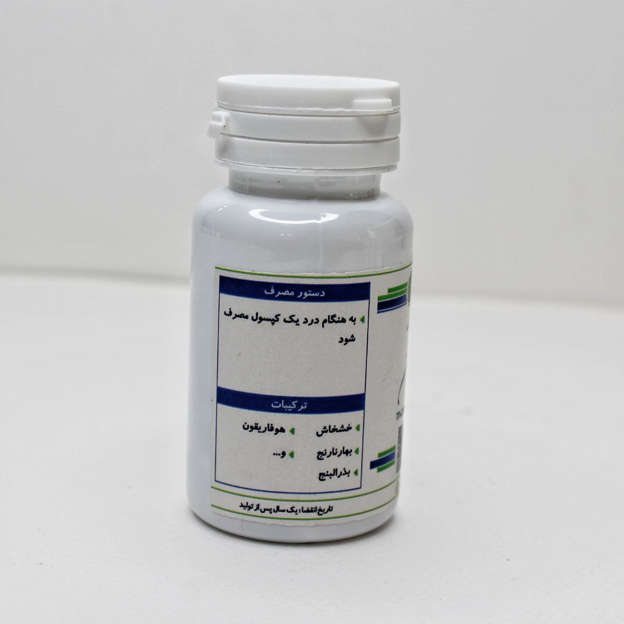 - دستور مصرف: به هنگام درد، یک کپسول میل شود. نکته: در روز بیشتر از دو کپسول مصرف نشود.
