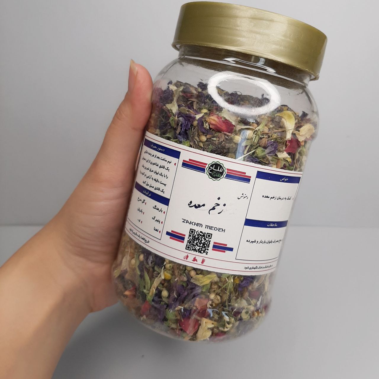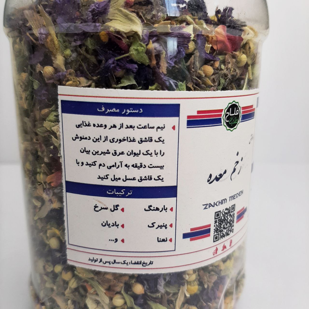 - ترکیبات: بارهنگ، پنیرک، نعنا، بادیان، گل سرخ و ...