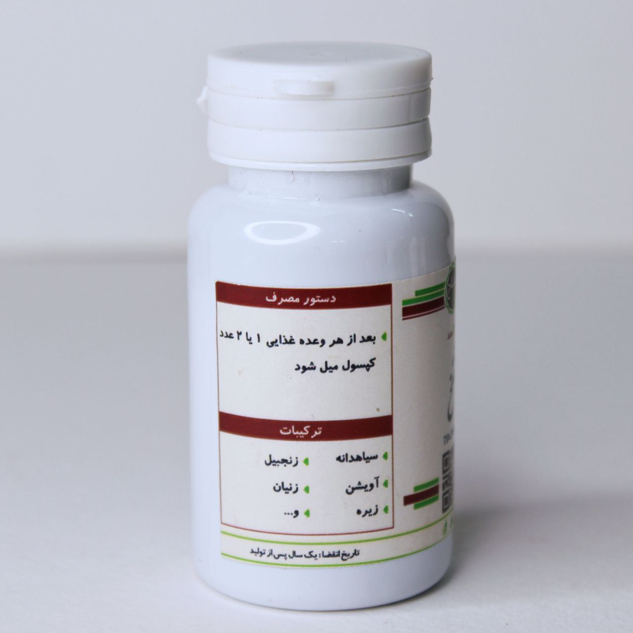- ترکیبات: زنیان، سیاهدانه، زنجبیل، اویشن، زیره و...