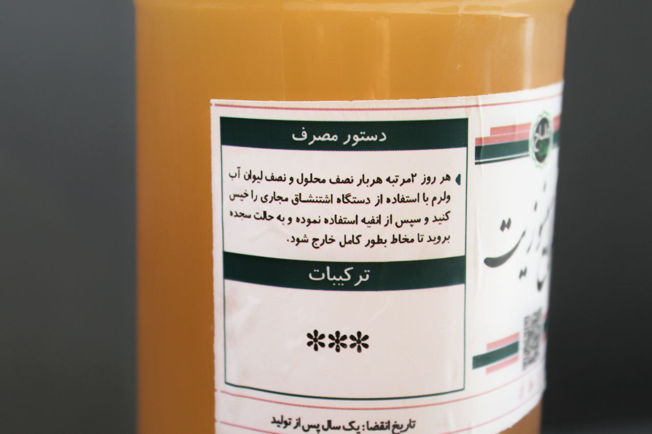 - دستور مصرف: هر روز 2 مرتبه هربار نصف محلول و نصف لیوان آب ولرم با استفاده از دستگاه استنشاق مجاری را خیس کنید و سپس و سپس از انفیه استفاده نموده و بحالت سجده بروید تا مخاط بطور کامل خارج شود.